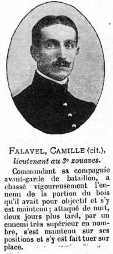 - Camille Joseph Falavel, Mort pour la France le 24 septembre 1914