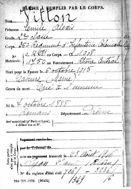 - Emile Alexis Vitton, Mort pour la France le 6 octobre 1915