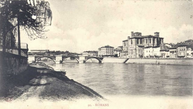 Le premier acte où il soit fait mention d’un pont sur l’Isère à Romans-sur-Isère, est daté du mois d’octobre 1033, du temps de Léger, archevêque de Vienne et abbé de Romans-sur-Isère, administrateur actif et éclairé, qui dota ces deux villes de plusieurs établissements importants.