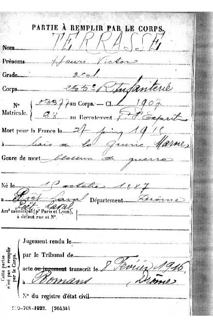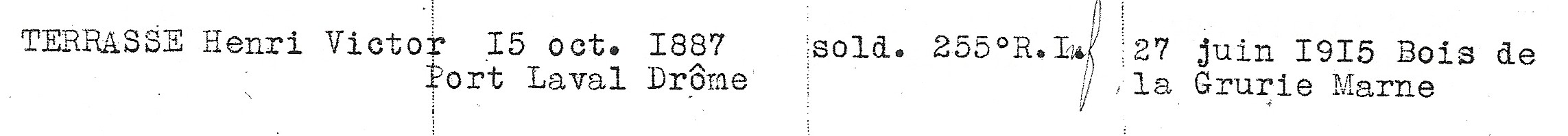 - Henri Victor Terrasse, Mort pour la France le 27 juin 1915