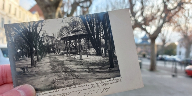 L’objet que nous présentons aujourd’hui est une photo de la promenade des Cordeliers, aujourd’hui place Jules Nadi, telle qu’elle était avant 1901. C’est la seule photo montrant le fossé en pente abrupte qui occupait la moitié de la place et c’est le seul exemplaire connu.